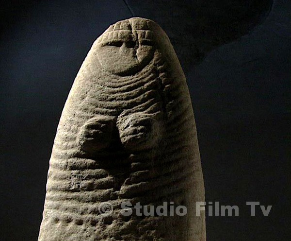 di grandi massi talvolta istoriati su pił lati, forse dipinti, rappresentanti figure dall'aspetto umano, con una parte basale destinata ad essere